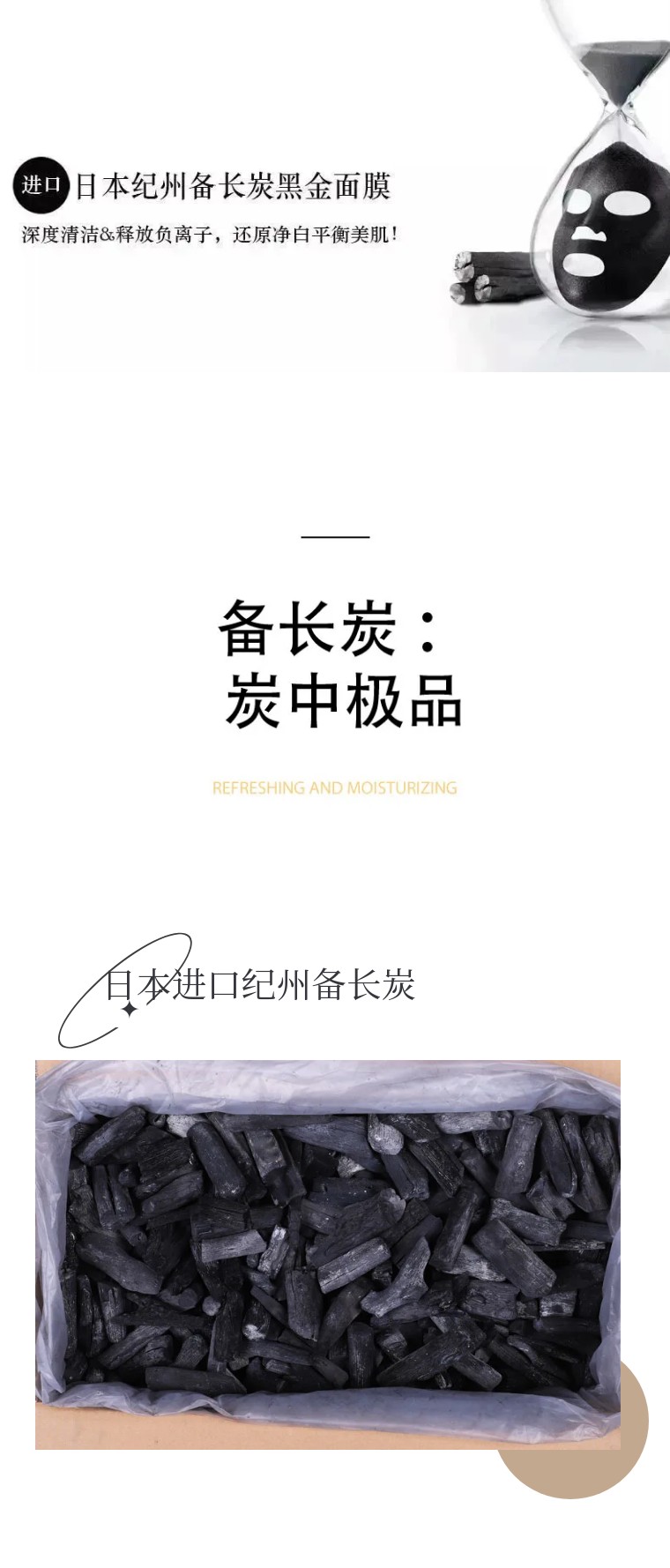 本款面膜膜材甄选日本纪州备长炭